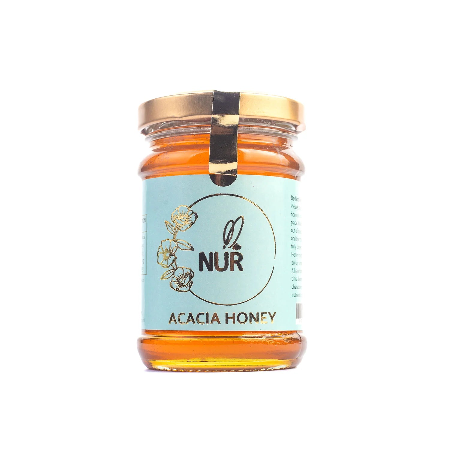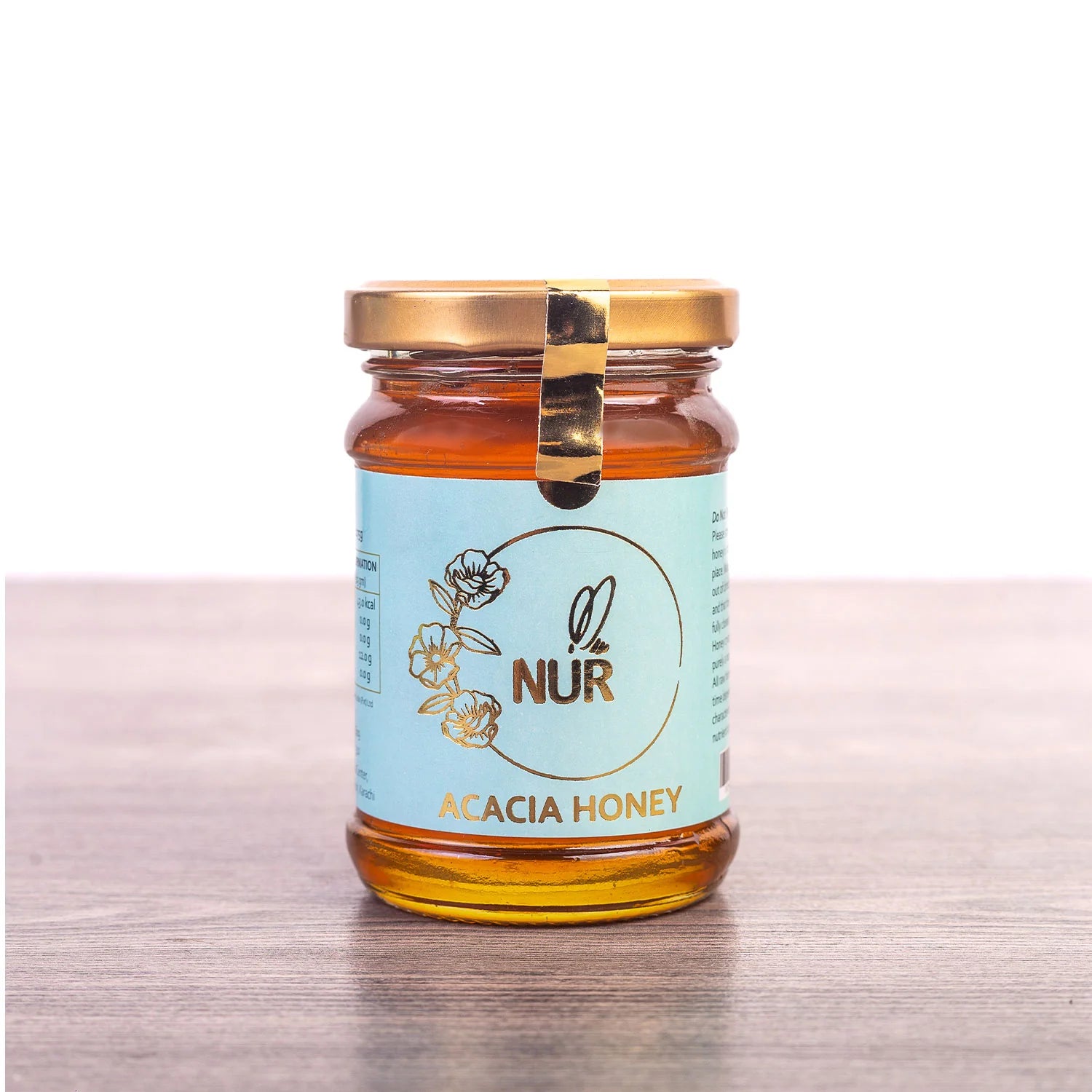 Nur Acacia honey is 100% raw, unprocessed & free from any additives, it is derived from the nectar of the robinia pseudoacacia flower. Acacia honey is relatively lighter in color with a sweet, delicate flavor. It has a range of health benefits which are likely attributed to its high antioxidant content.